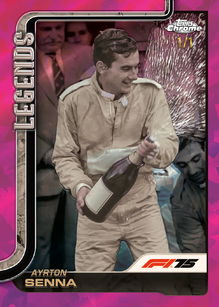 The 2025 Topps Chrome® Formula 1® Sapphire Edition collection has arrived, featuring the largest Rookie lineup ever seen in a Topps F1® release. Collect the full 200-card Base Sapphire Set showcasing F1®, F2™ and F3™ drivers, F1® cars, F1® duos, team logo cards, and including more legends than any other collection! This edition shines with Sapphire-only parallels and features two exclusive insert sets, Infinite Sapphire and Sapphire Selections, delivering refined design, depth, and brilliance that set Sapphire apart as the peak of Chrome collecting. This year’s release also brings Sapphire Edition inserts such as Helmet Collection, Speed Demons, Floor It, 1975 Speed Wheels and Ace of Trades. Keep an eye out for Sapphire Autograph Cards from your favourite drivers. Push to the finish line and complete the set!