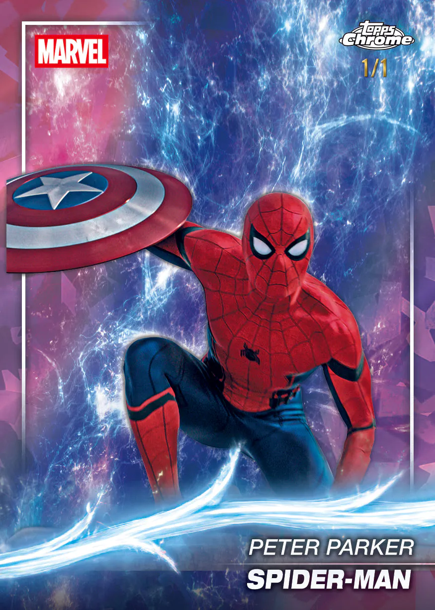 The 200-card base checklist features Marvel Studios' wide library of iconic characters from beloved and recent film and TV releases, set against striking Sapphire Chrome technology. Look out for the exclusive, super rare Sapphire Selections cards, hand-illustrated one-of-kind sketches, and the elusive 1/1 padparadscha parallel! Specific to Chrome releases, collectors can find debut cards displaying a custom-designed Marvel-themed medallion, which marks each character’s first-ever trading card appearance. The innovative, narrative designs and a deep roster of autographs from top-tier talent are enhanced by both Chrome technology and characteristic Sapphire parallels. 2025 Topps Marvel Studios Chrome Sapphire Edition delivers a heroic new chapter for collectors everywhere. All sales are final. Art subject to change. Not responsible for typographical/printer errors.