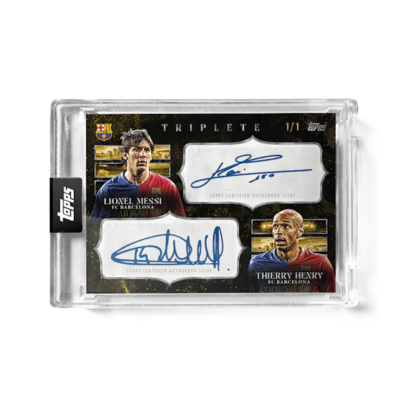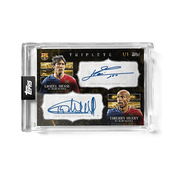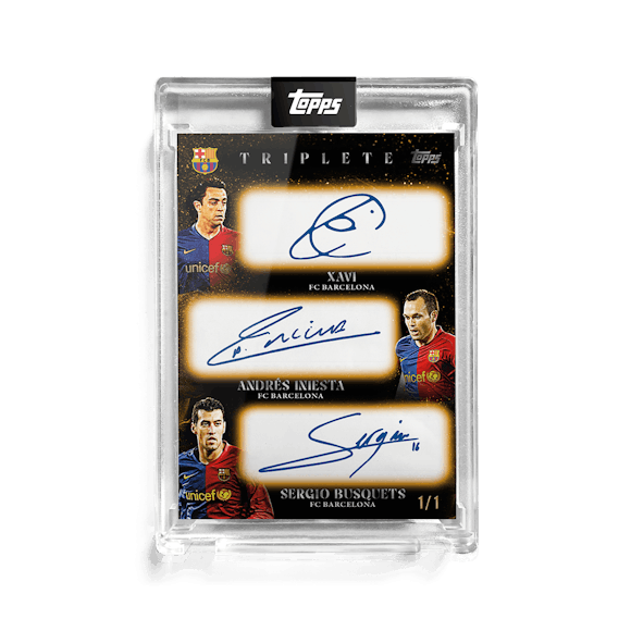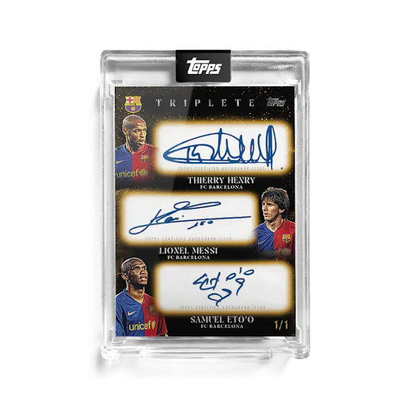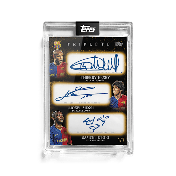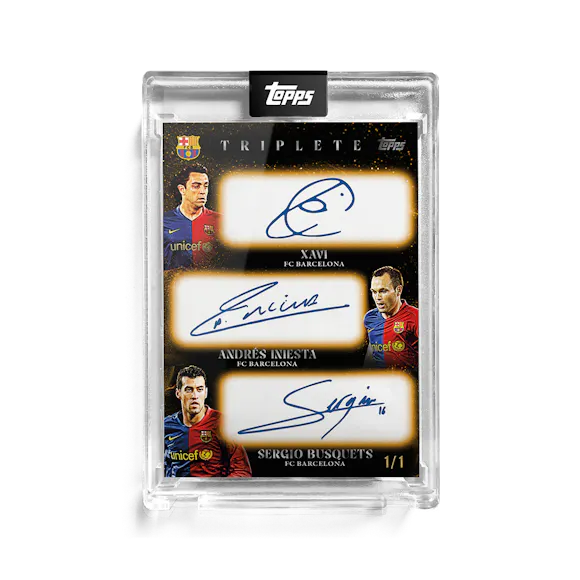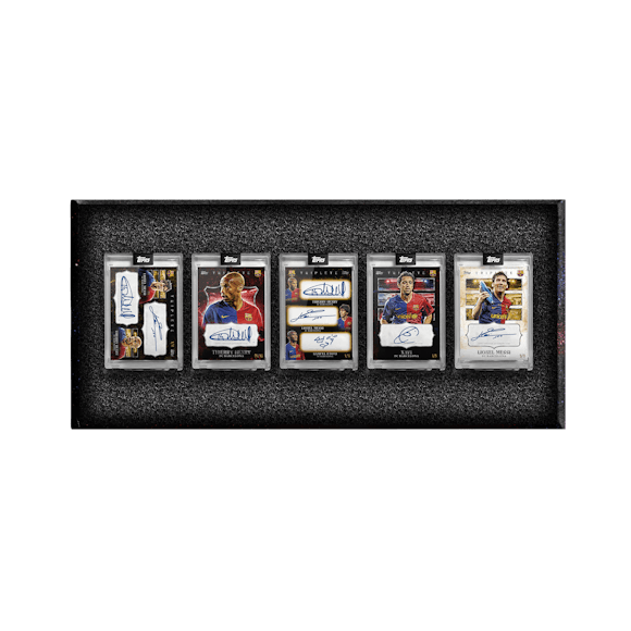 Topps celebrates one of the greatest teams in football history with the FC Barcelona Triplete premium trading card set. Featuring players from their historic 2008/09 treble-winning season on thick cards in a presentation case.