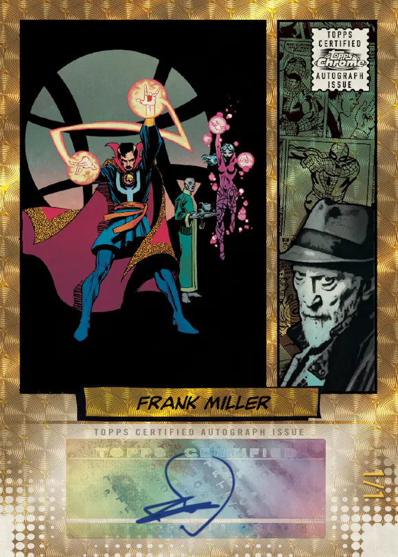Finally, we’re proud to announce an exclusive deal with iconic comic book artist, Frank Miller. Frank has done 30 exclusive sketch cards for Marvel Chrome, celebrating the 60th Anniversary of Daredevil. The legendary artist is also one of the signers for our authentic Marvel Comic Book artist autograph cards, which also includes Steve McNiven, Andy Kubert, Adam Kubert, plus more.