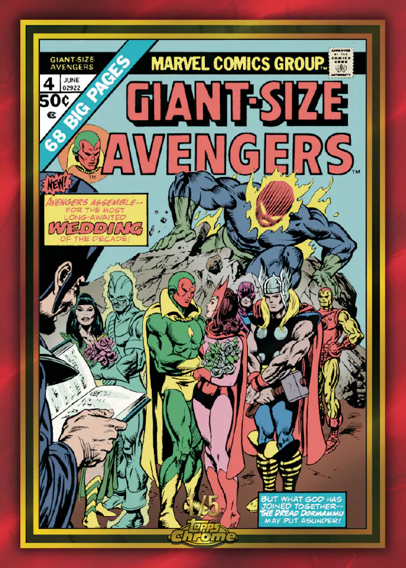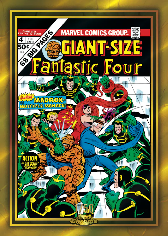 Don’t miss inserts such as Spider-Man Gold, Marvel Icons, Daredevil 60th Anniversary and Marvel 90s… plus, inside every box you’ll find a Giant-Size Chrome box-topper card, celebrating the 50th Anniversary of Marvel Giant-Size comics.