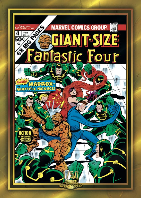Don’t miss inserts such as Spider-Man Gold, Marvel Icons, Daredevil 60th Anniversary and Marvel 90s… plus, inside every box you’ll find a Giant-Size Chrome box-topper card, celebrating the 50th Anniversary of Marvel Giant-Size comics.